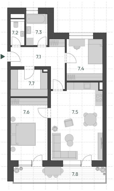 Obytná plocha 75,5 m2