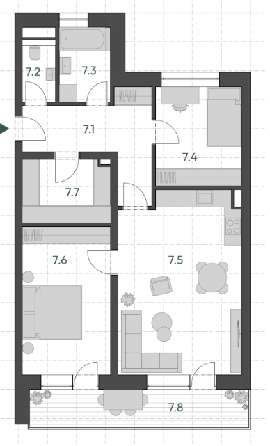 Každý byt má svůj vlastní balkon, ideální pro ranní kávu nebo večerní relax. Navíc nemusíte řešit každodenní starosti s parkováním, protože přímo u domu je pro vás připravené parkoviště.
